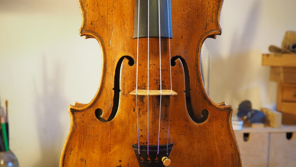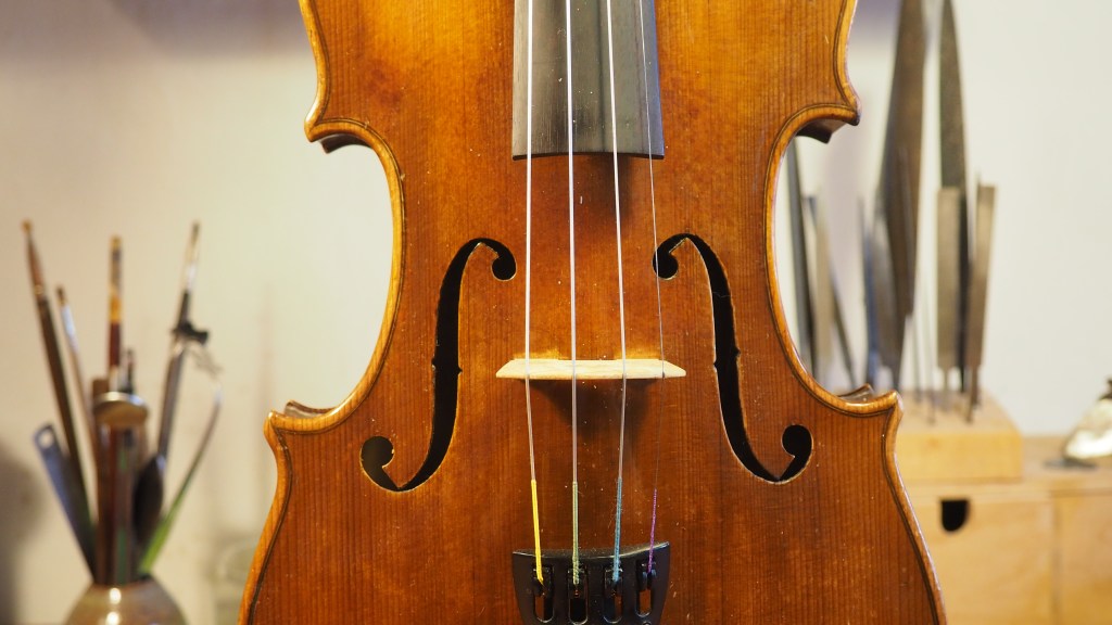 Violon « Jacques Leclerc » de 1910, provenant des ateliers Laberte à Mirecourt. Son timbre est clair et brillant, notamment pour ses aigus cristallins.
